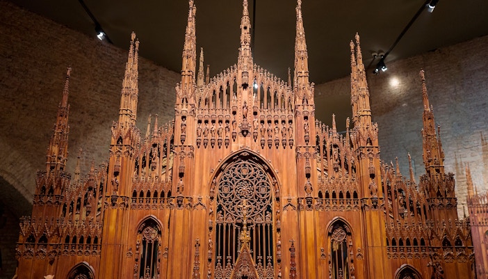 - Kunstwerken en artefacten: Bekijk meer dan honderden artefacten beelden, borduurwerk, terracotta en gipsen afgietsels, glas-in-loodramen en wandtapijten van verschillende kunstenaars, waaronder een houten model op schaal 1:22 van de Duomo.